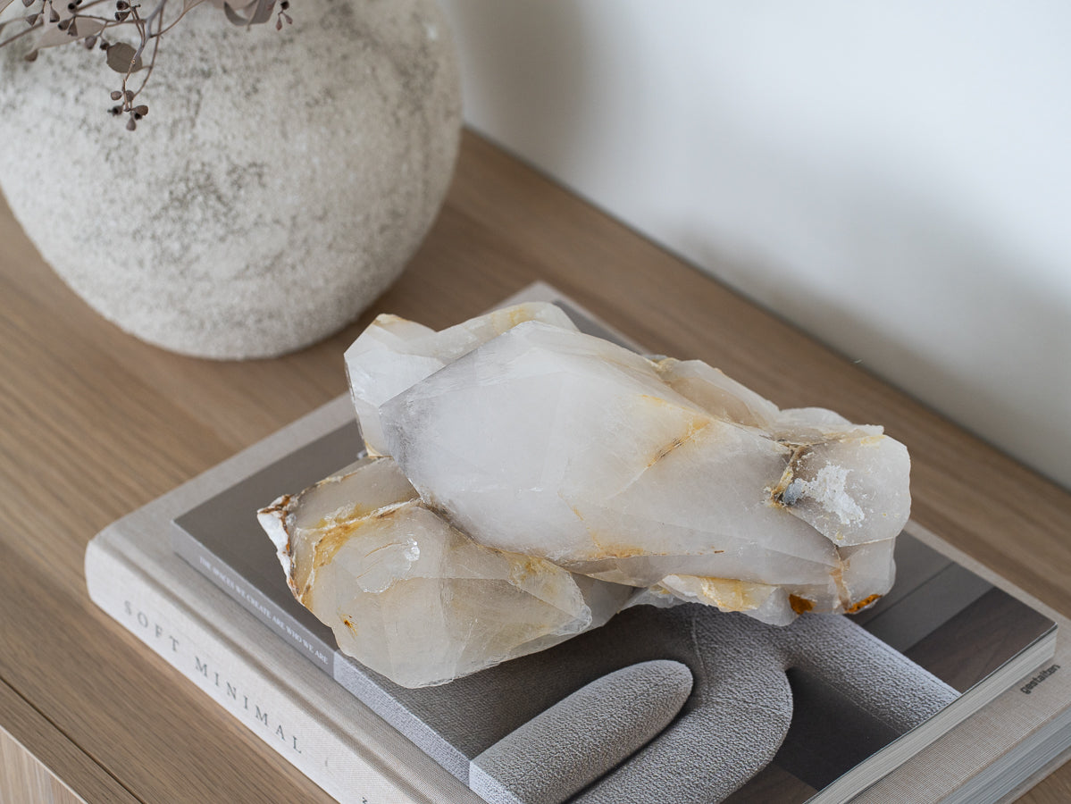 Raw and riveting, this large Quartz Crystal cluster effortlessly serves as an eye catcher within your home while exuding a sense of calm and balance.