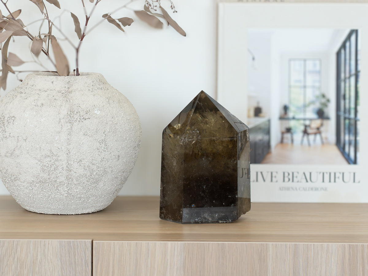 Known as a stone of grounding and protection, Smoky Quartz is valued for its ability to absorb negative energy and promote emotional balance. Within the home, Quartz Crystal is said to foster a sense of calm focus, grounding the energy of a space while enhancing inner strength and resilience.