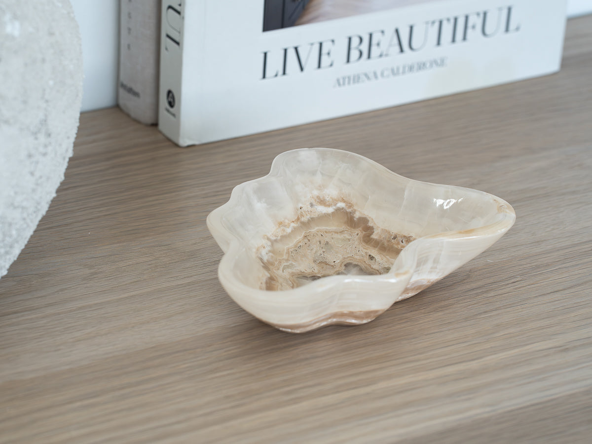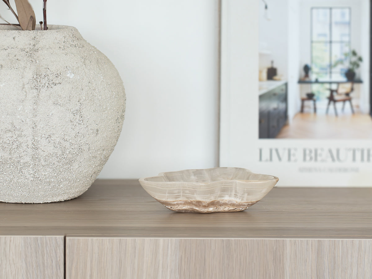 With delicate organic curves and timeless colours, this decorative Onyx dish radiates a sense of refined grace.