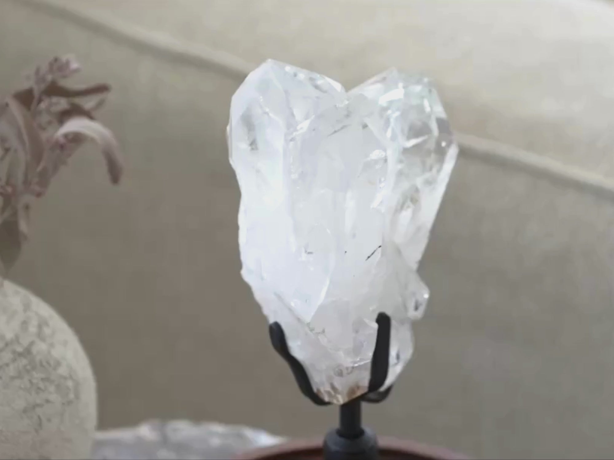 - Material: Quartz Crystal & iron stand
