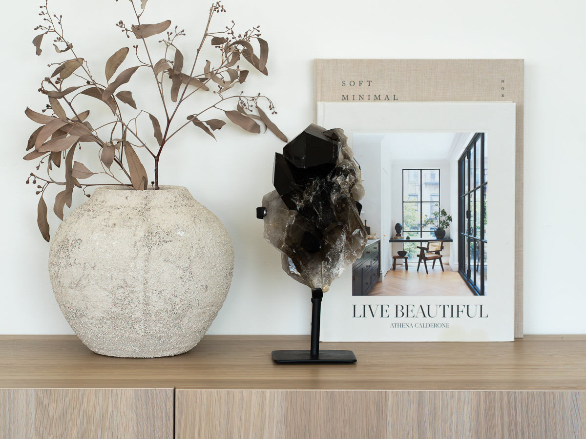 Known to absorb negative emotions and toxins, black Quartz Crystals are considered protective stones that lend strength and confidence. Their bold aesthetic reflects their powerful properties.