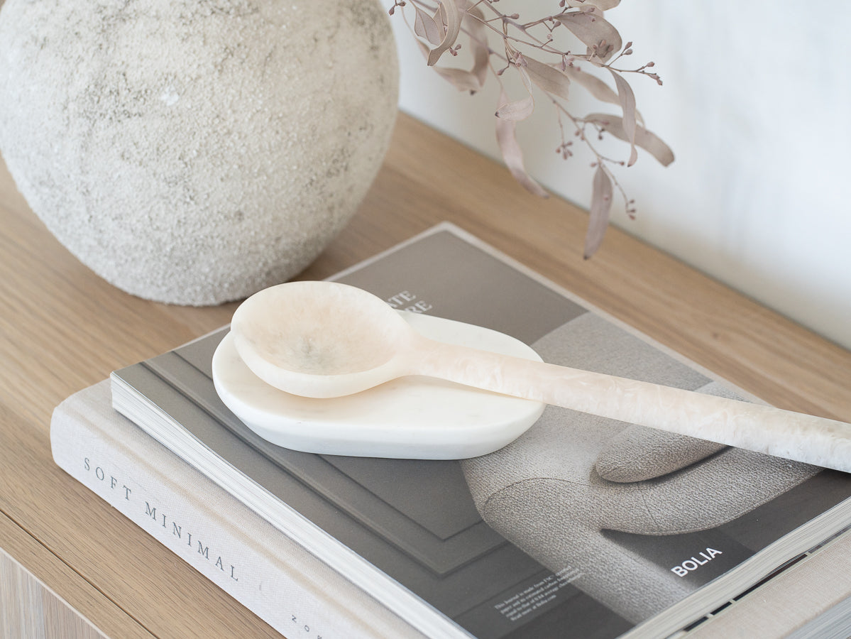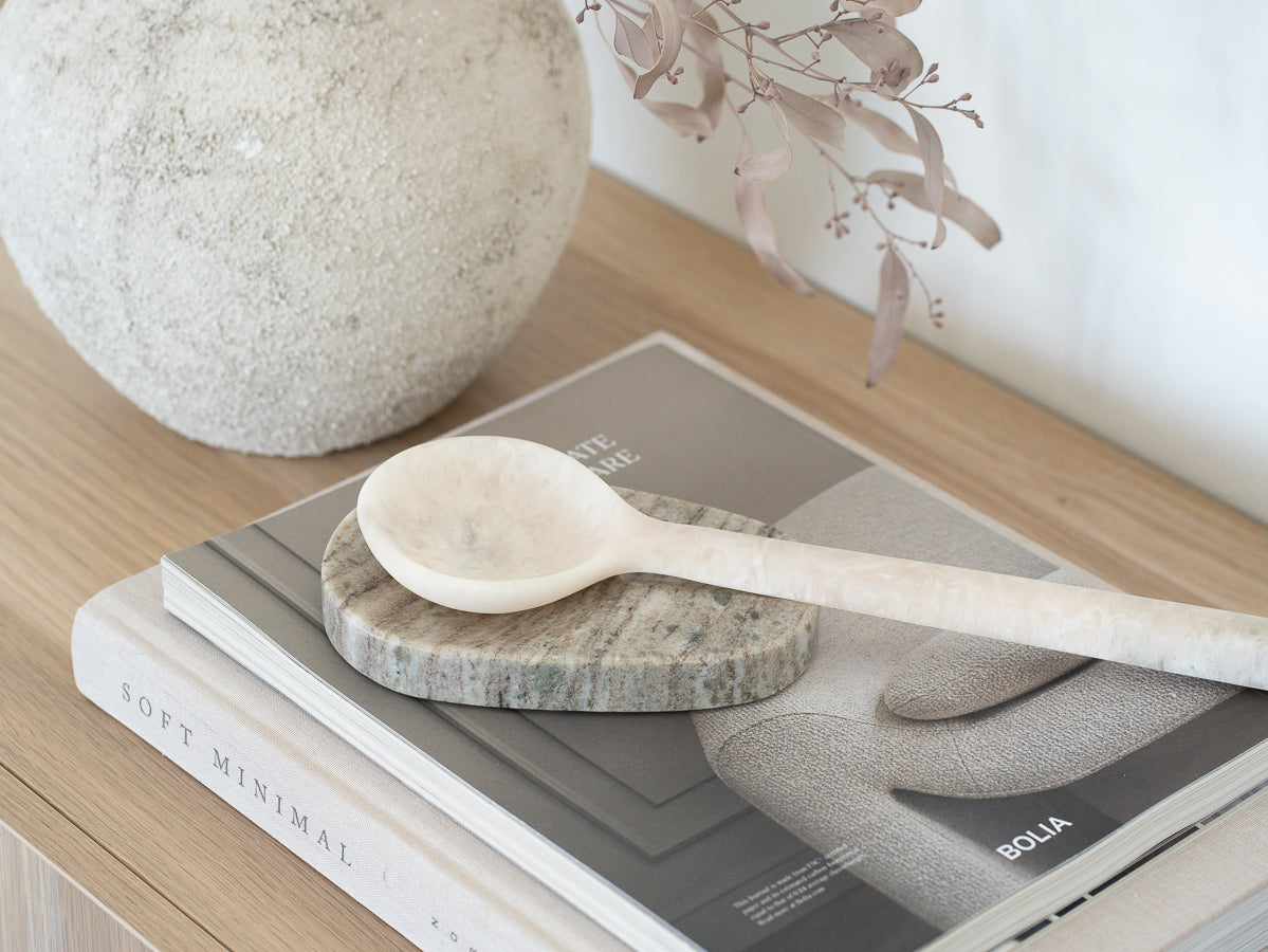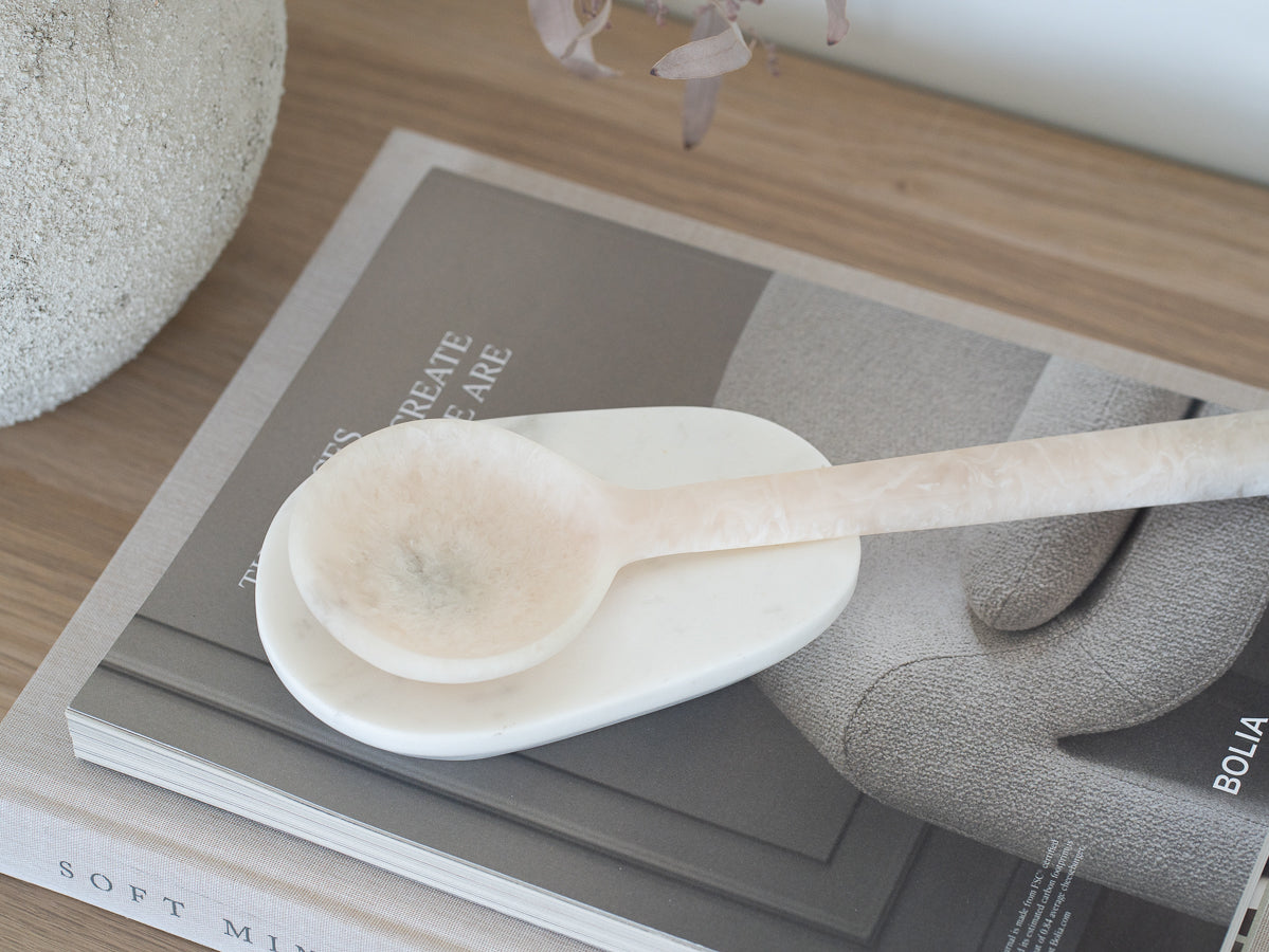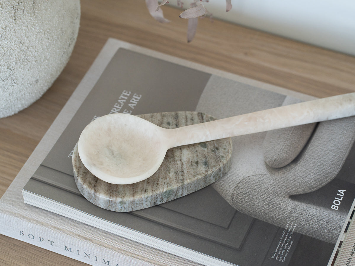 This Marble piece, defined by its delicate veining, is designed to hold larger utensils such as serving spoons, knives, or cake cutters. Functional yet refined, it protects your surfaces while elevating everyday moments.
